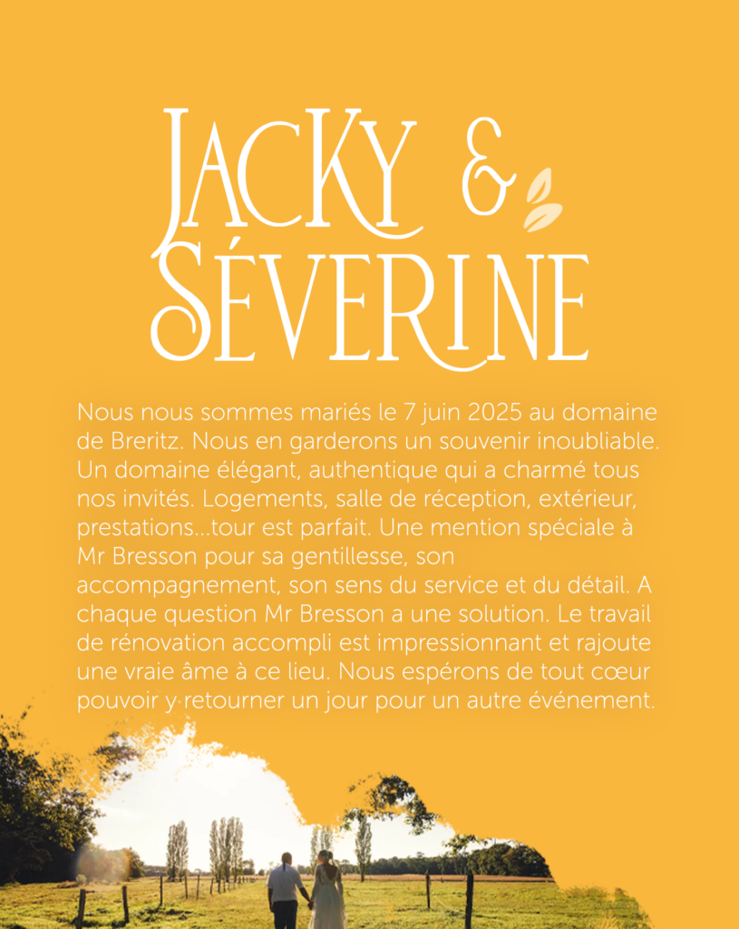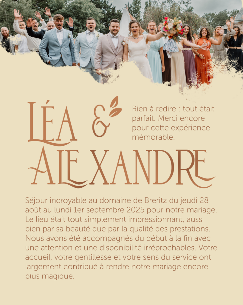 Si vous vous êtes mariés à Breritz en 2025 et que vous ne nous avez pas encore partagé les images de votre photographe ou de votre vidéaste, n’hésitez pas à nous les envoyer (ou à nous autoriser à les utiliser) :